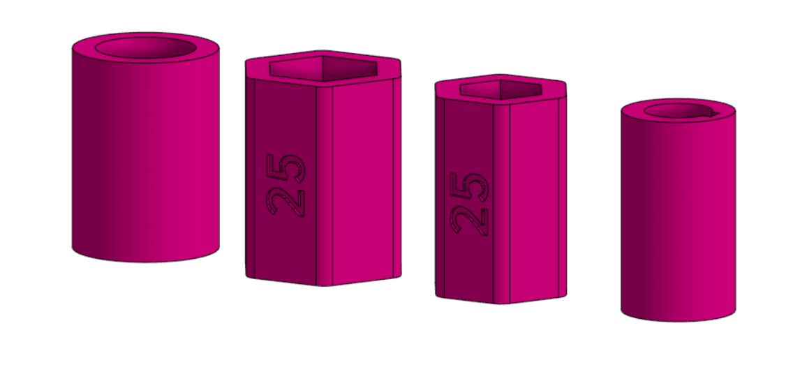 Spacer - This FeatureScript can create spacers for 1/2" hex shaft, 3/8" hex shaft, round shaft, or 8 mm keyed shafts, with options to engrave the spacer length. It is similar to the one in Julia's FeatureScripts but creates different style spacers and is better suited for metric.